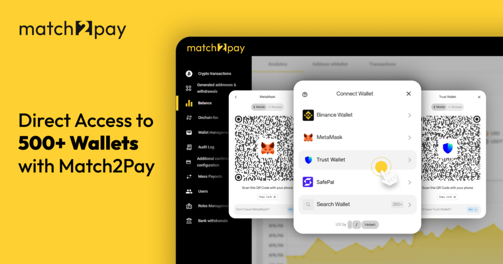 - Expanding Match2Pay’s Crypto Payment Options with Over 500 WalletsAs part of our ongoing effort to broaden payment capabilities, we’ve enhanced Match2Pay’s payment network with a major integration. The platform now offers direct connectivity to more than 500 wallets, extending Match2Pay-powered reach to millions of crypto users worldwide without adding complexity to merchant payment… Read more: Expanding Match2Pay’s Crypto Payment Options with Over 500 Wallets
